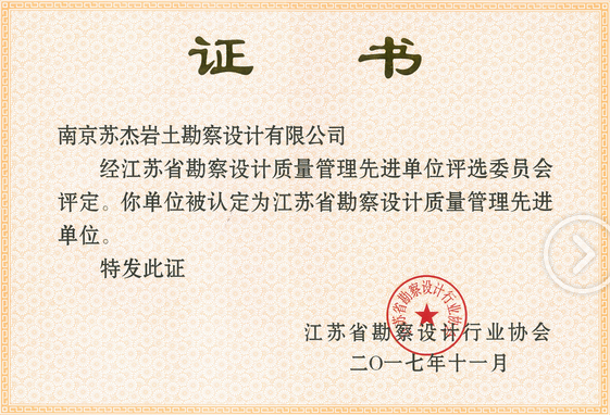 江蘇省勘察設(shè)計質(zhì)量先進單位